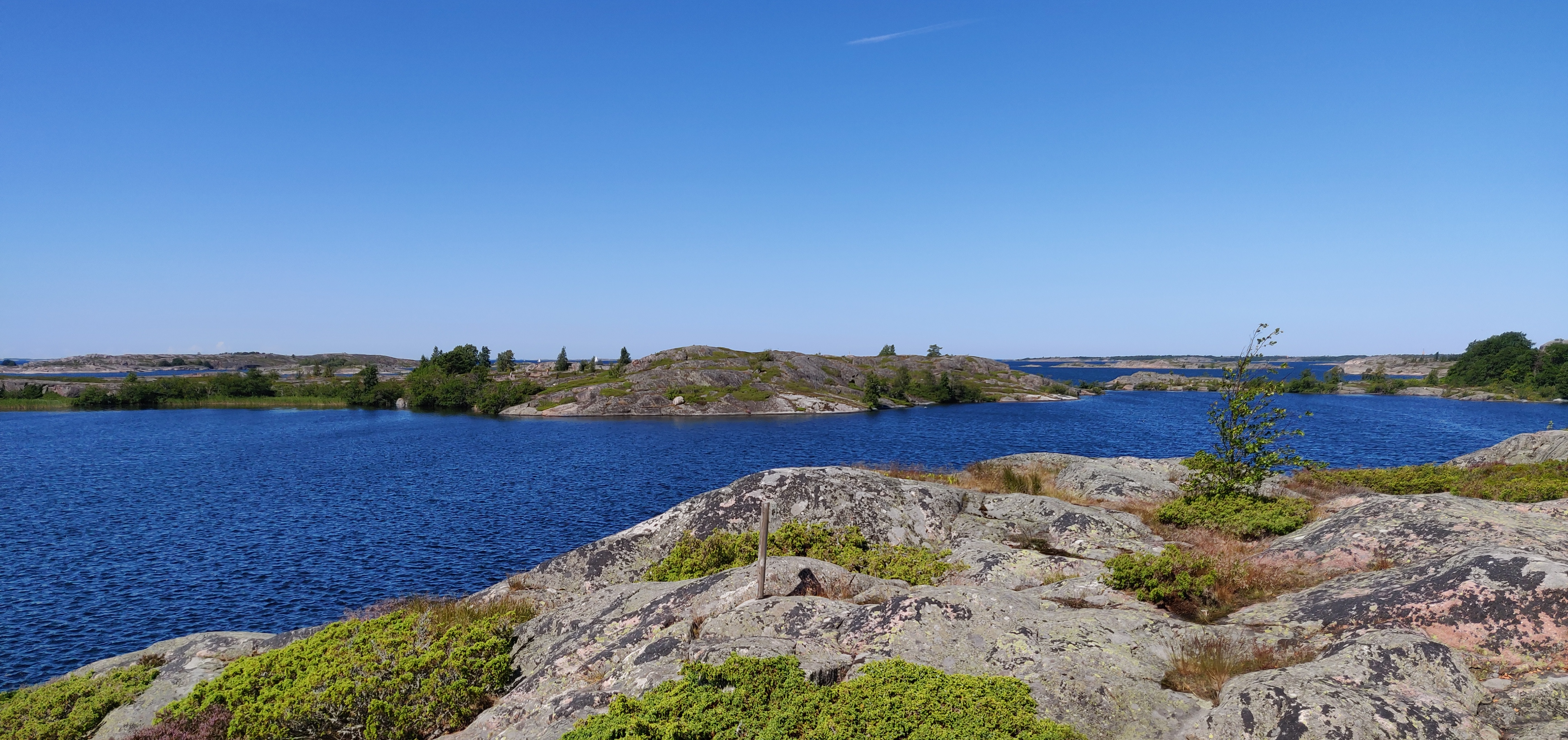 After the bad weather has passed, we take a short trip down to Brunskär, in sunny weather with almost no wind. Brunskär has a small jetty where we can squeeze in without being in the way of the passenger ferry, and a total winter population of one old lady. The lady’s nephew greeted us at the jetty, showed us where the walking paths across the island was, and made sure we felt welcome. We also bought a jar of honey made on the island. Very nice walking on the island, and we find enough bilberries for dessert.
