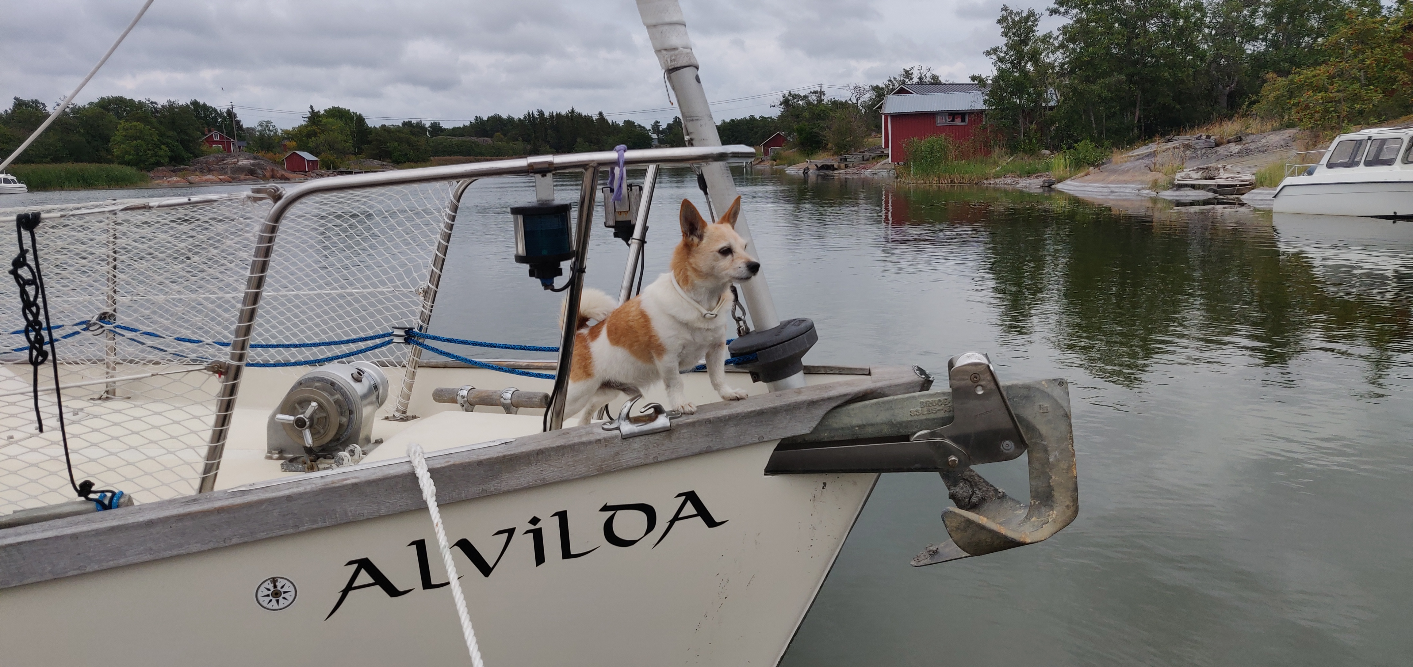 After Jurmo, we continue south-west and west, visiting Bärö where a guest harbour and a restaurant, Glada Laxen, has been built in an old pilot’s port. After taking breakfast at the restaurant, we sail with very good winds north west, following the old ships fairway (now unmarked) to northern Åland. We find a very nice spot in a natural harbour at Saggö’s northern side, well protected from the south-westerly wind that is picking up. We stayed there for two nights – hauling the 4G antenna up in the mast to get good connection- and then, with a storm coming up on the five-day weather prognosis, we headed south, aiming for Mariehamn. Om the 16th of August, we arrived in Mariehamn Österhamn, just in front of the gale-force gusts that would turn into storm gusts over the weekend.