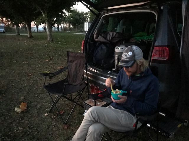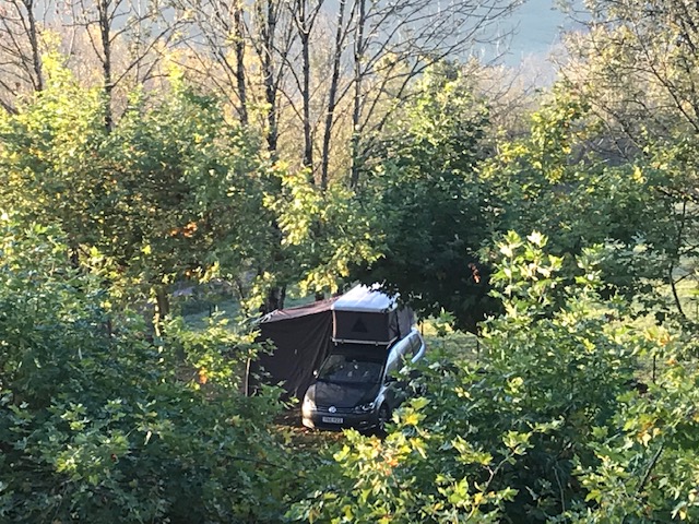 Earlier we had a Wolkswagen Sharan with a roof top tent and when the weather was nice we prefered camping with the dogs.