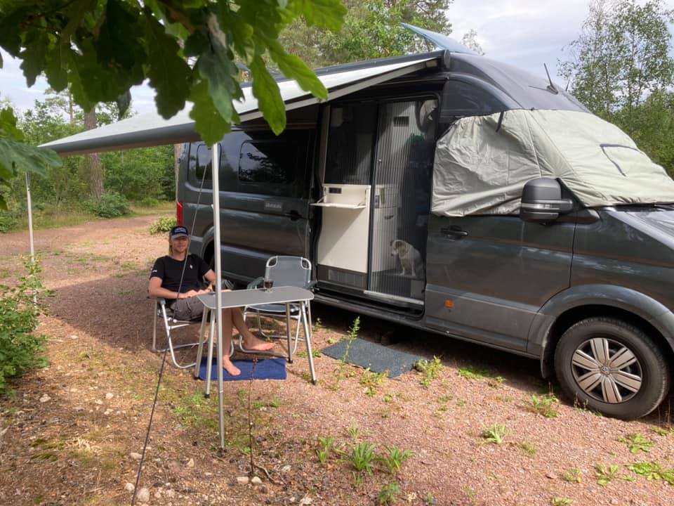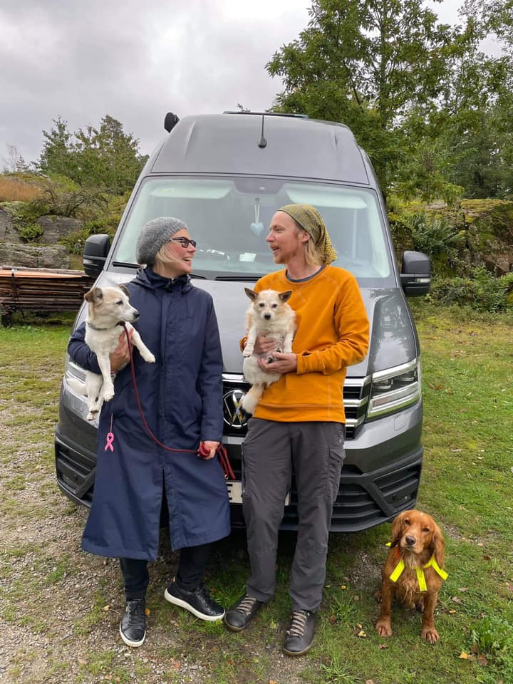 In march 2021 the whole pack moved into a Wolkswagen Grand California 680 4M 2021 named Grankan. The best thing ever for us and the dogs! A tiny home on wheels – a perfect match for our way of living! We sold the Wolkswagen Sharan, the roof top tent and our sailing boat Alvilda and went off on adventures in Sweden for 6 months. In October 2021 we left the Swedish borders for west Europe beginning with Germany and France. With the RV we does’nt have to care a about heavy rain or very windy weather. Feels great!